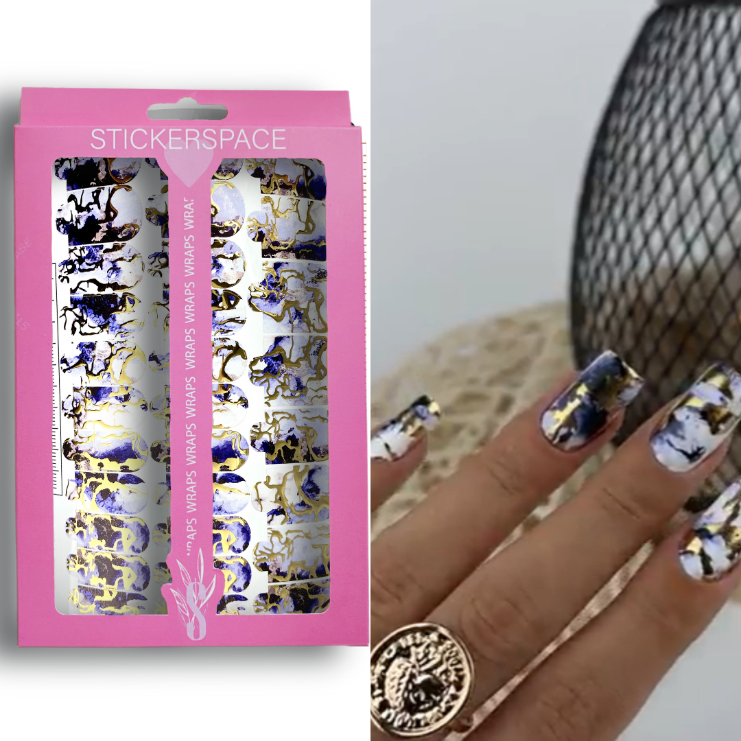 Набір плівок – «WAGUE» виражений темно-синім каменем із золотистим мерехтінням. Ідеальне рішення для створення швидкого та унікального дизайну.