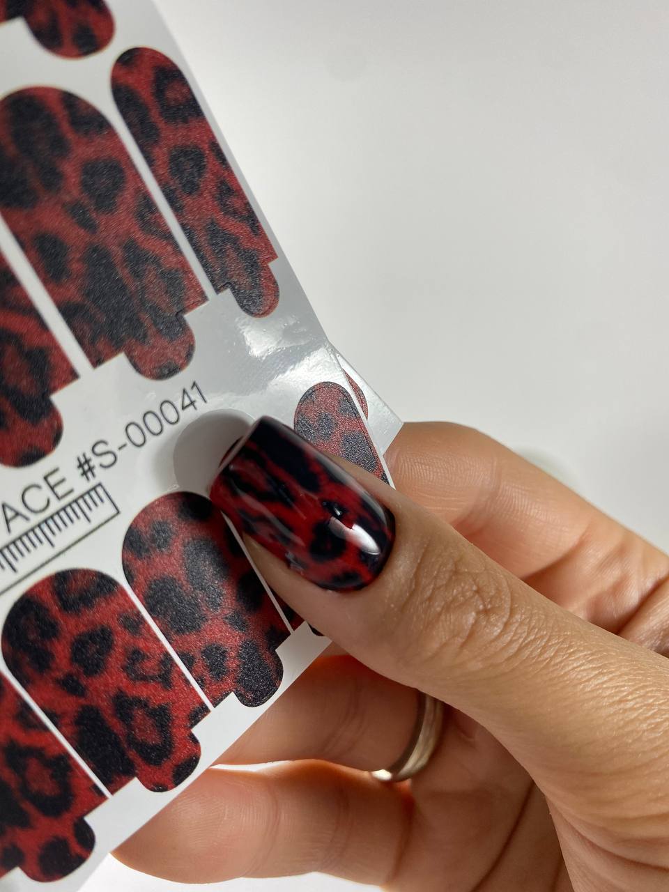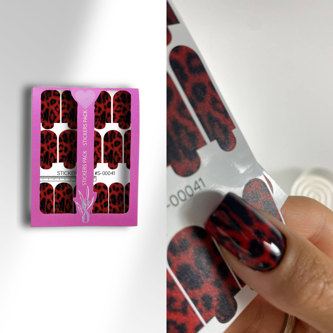 Набір плівок S-00041 – це спокійніша варіація леопардового принта, виконана в класичному стилі, але з використанням червоного та чорного кольорів. Це модний дизайн, який ідеально підійде до будь-якого образу.