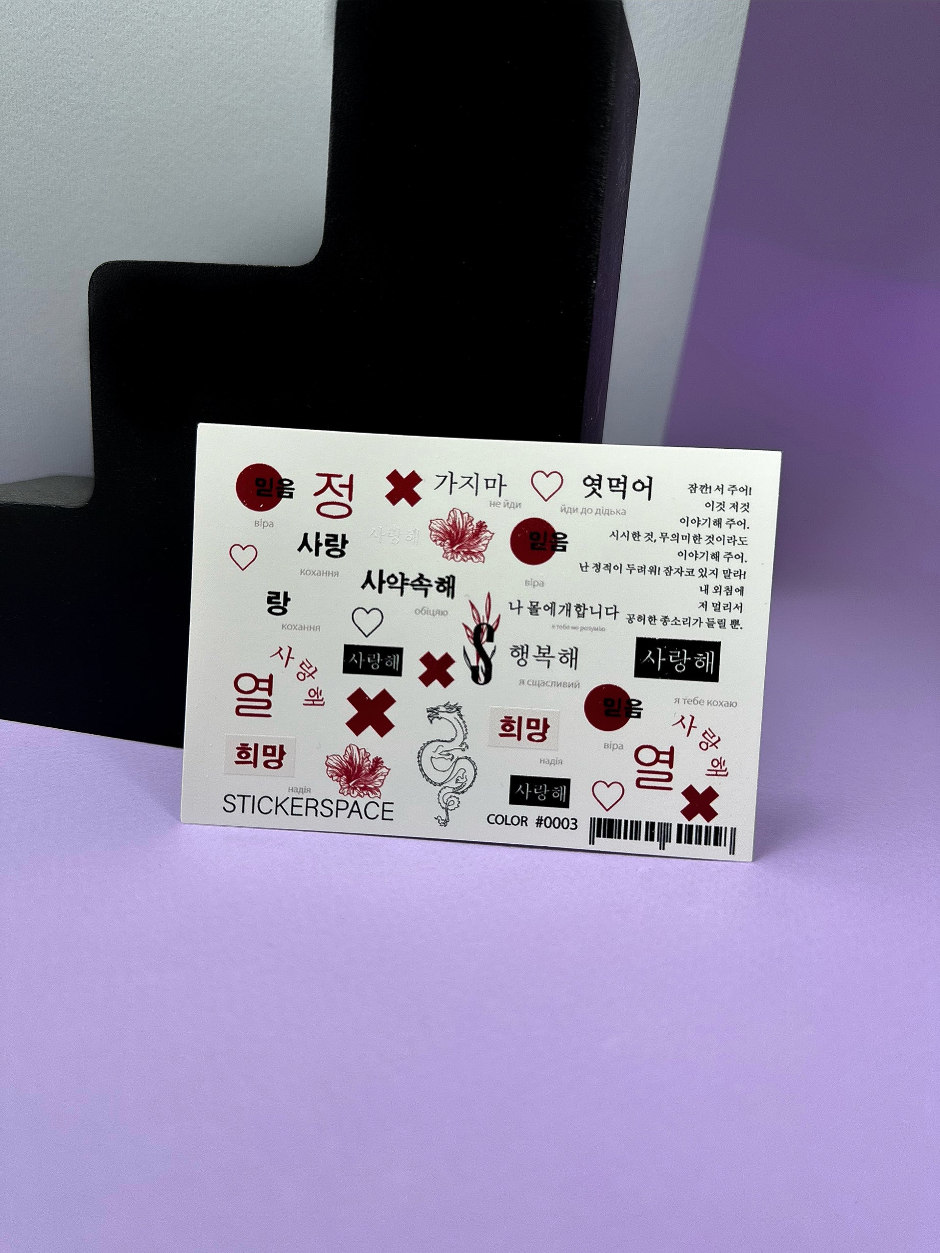 Додайте нотку корейського стилю та емоцій до вашого манікюру з цими унікальними наклейками для нігтів у формі водної гірки! Натхненні корейською культурою, ці наклейки містять слова та фрази корейською, українською та англійською мовами, такі як «віра», «любов», «надія» та багато інших, а також символічні зображення квітів гібіскуса та східного дракона.