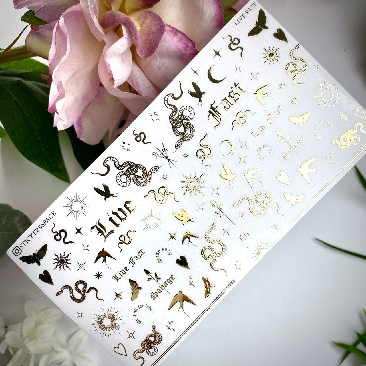 Стікери для нігтів "Live Fast" Срібні|Золоті
