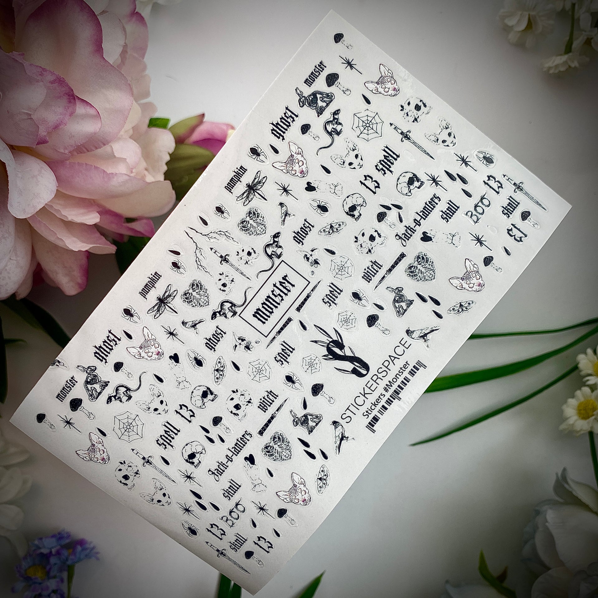 Пориньте у світ моторошної краси з нашими самоклеючими наліпками «Creature Feature»! Цей набір поєднує готичні та містичні елементи, створюючи унікальний та загадковий дизайн для вашого манікюру.